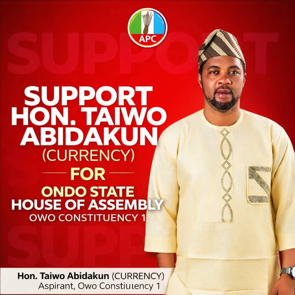 As the journey toward 2027 unfolds, the people of Owo Constituency I must carefully consider the kind of leadership they desire. In Hon. Taiwo Abidakun, they find a candidate who not only understands their struggles but is prepared to champion their cause with passion, competence, and integrity.